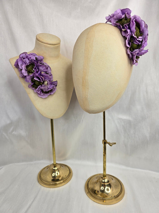 Lilac and green anemone hair flower/corsage