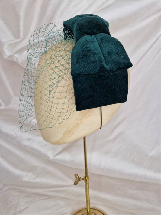 Bottle green velvet glittered half hat/fascinator with green beaded tassels (made to order)