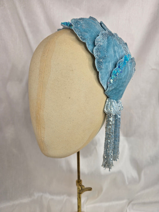 Pale aqua blue half hat/fascinator with beaded tassels (made to order)