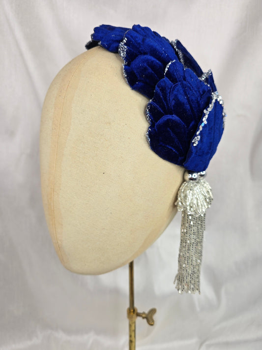 Royal blue and silver glittered half hat/fascinator with beaded tassels (made to order)